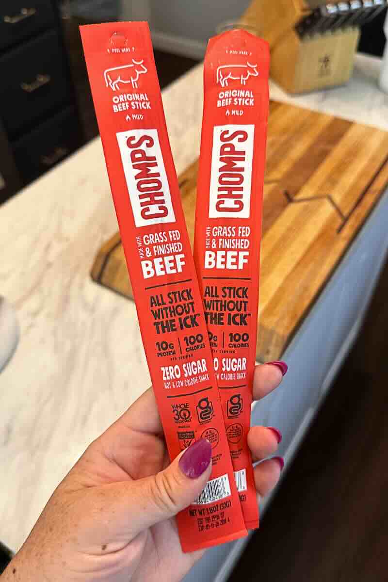 - Best for curbing sugar cravings: Chomps Beef Sticks