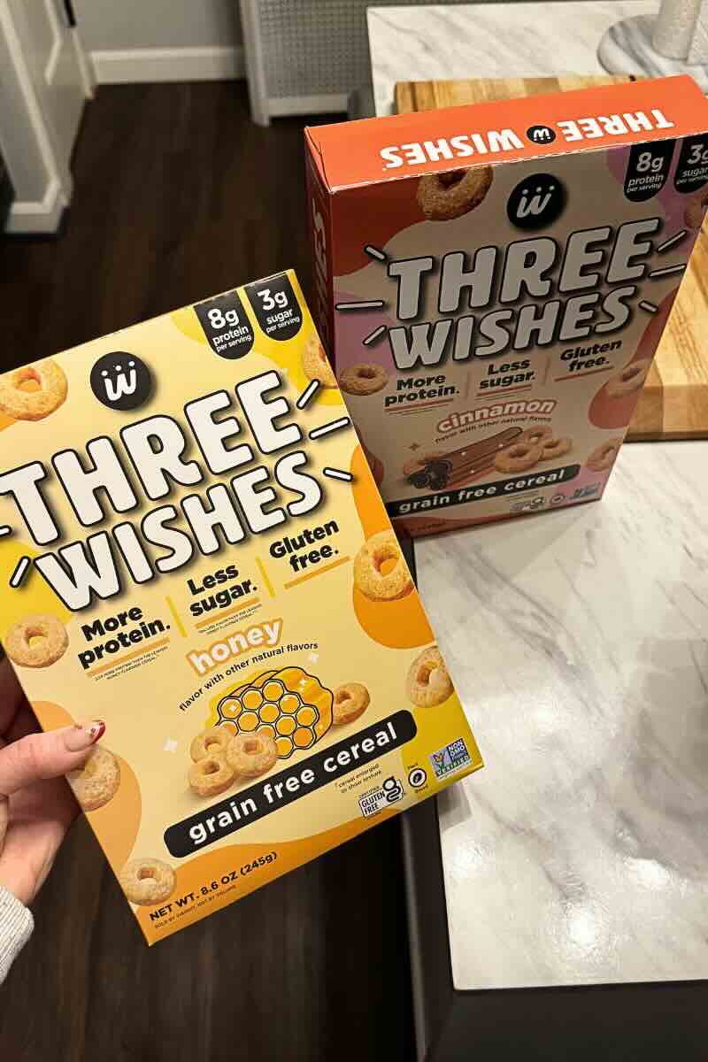 Three Wishes Protein Cereal (~8g protein per serving): If you've been out of the cereal game since going gluten free, Three Wishes will bring you right back. It's grain-free, made from chickpeas and pea protein, and has 8g of protein with only 3g of sugar per serving. The Cinnamon flavor tastes like a grown-up version of the cereal you ate as a kid but this one won't wreck your blood sugar. Eat it with your favorite dairy-free milk or straight out of the bag as a crunchy snack. Either way, it works. Shop Three Wishes on Amazon