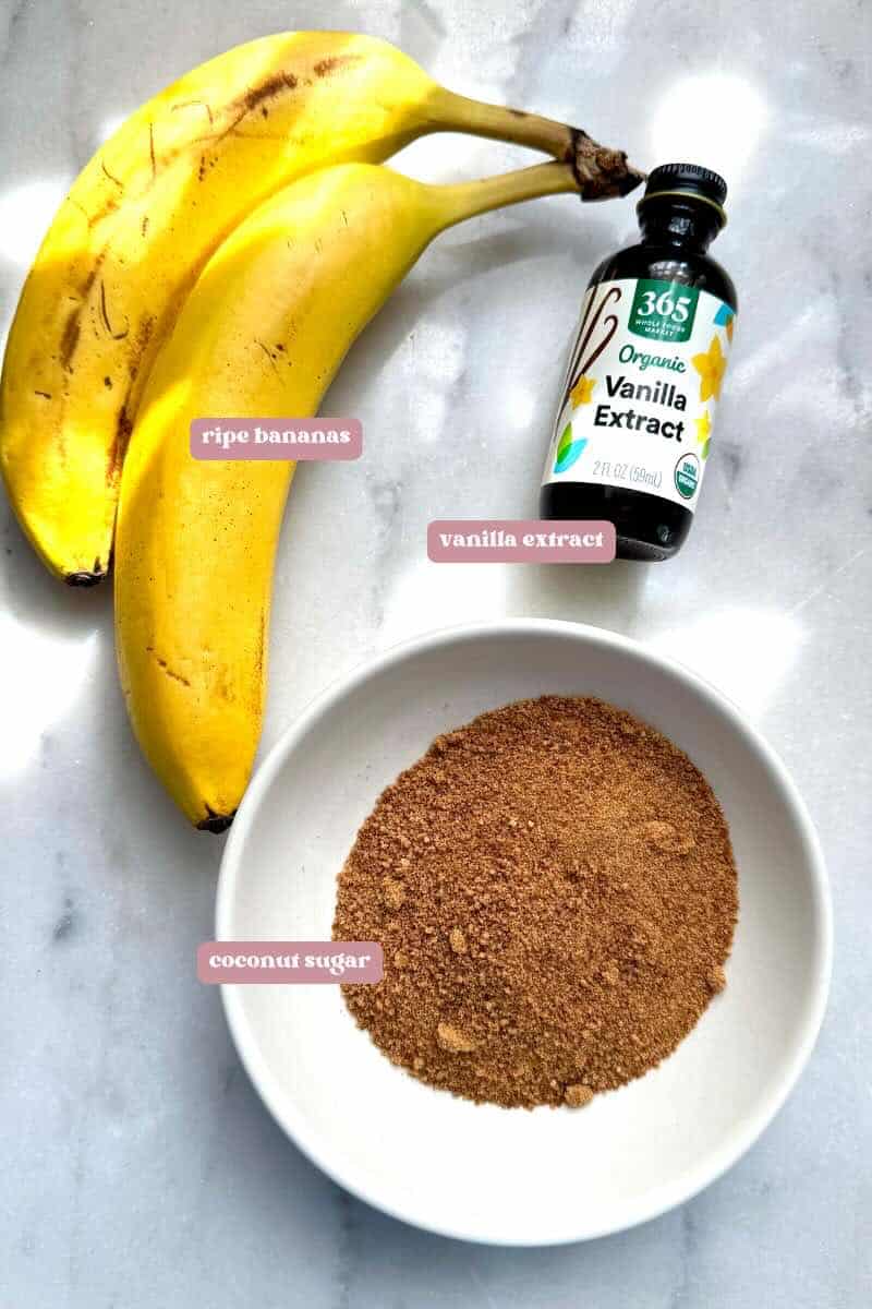 - Ripe Bananas. The riper the better for the sweetest, most banana-forward flavor. Think soft with brown spots but not quite ripe enough for banana bread.