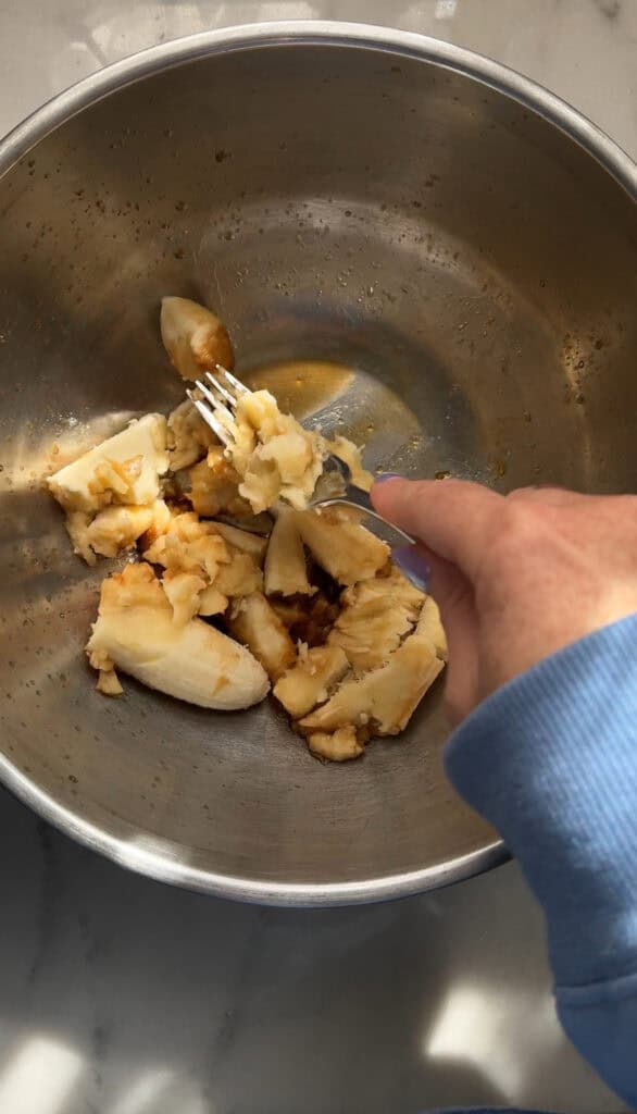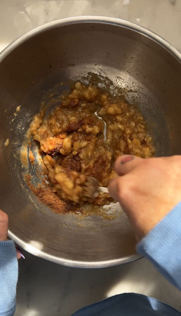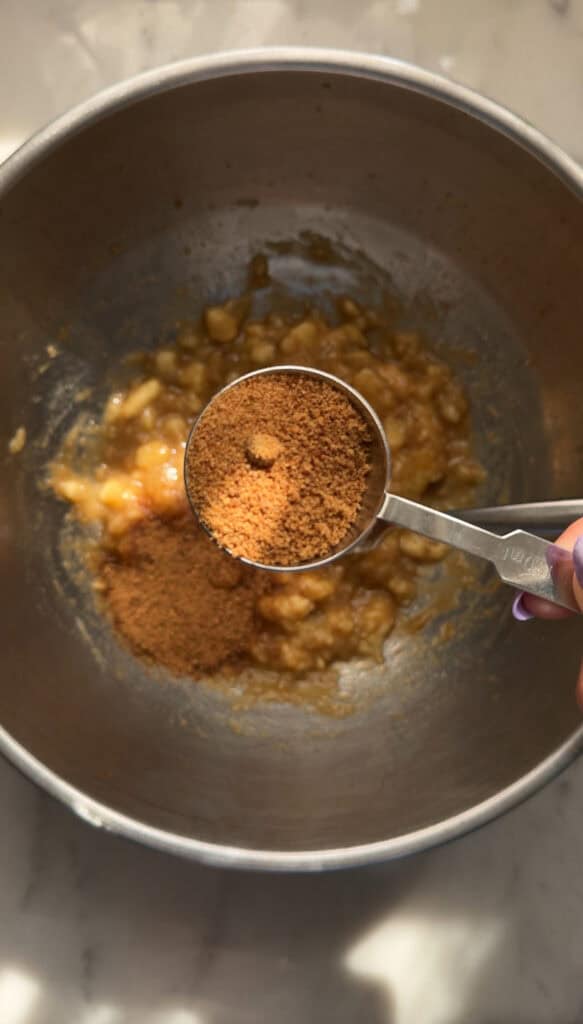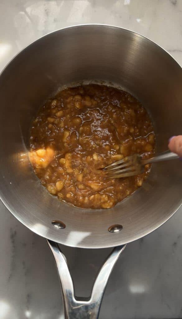 - Caramelize the bananas. In a saucepan over medium heat, stir together mashed bananas, 2 tablespoon coconut sugar, and vanilla. Cook 3-4 minutes until thickened and fragrant.