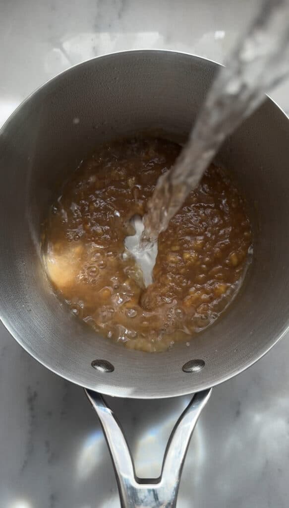 2. Simmer the syrup. Add water and remaining coconut sugar. Stir well and reduce heat to low. Let it simmer uncovered for 30โ40 minutes, stirring occasionally, until thickened slightly.
