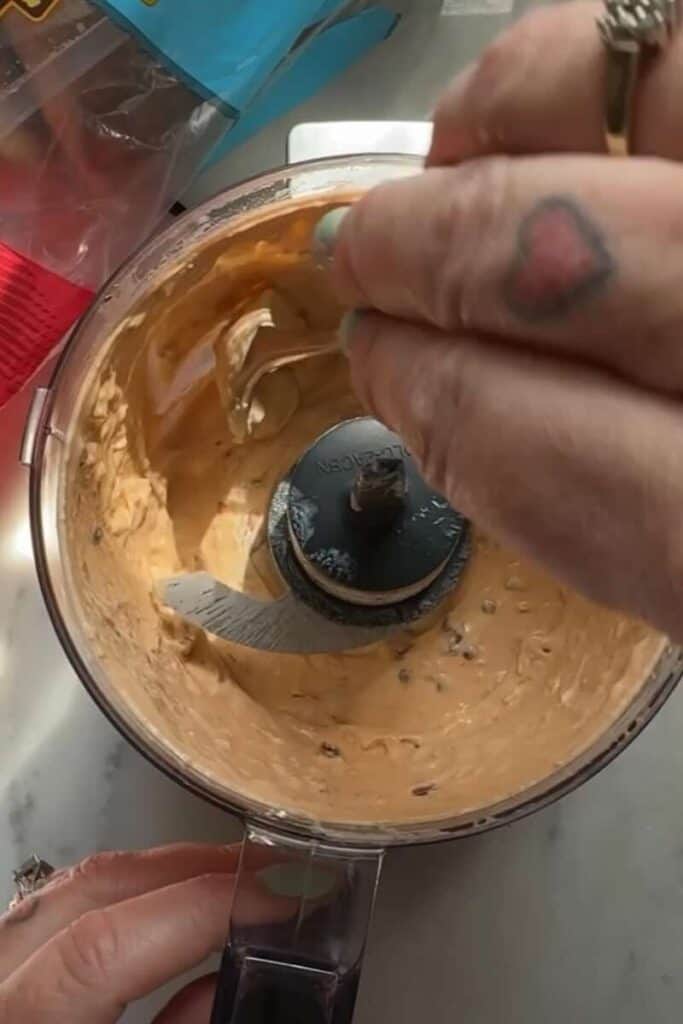 - Make the chipotle aioli in a food processor by adding yogurt, mayo and chipotle chilis and pulsing until smooth. (You can also do this in a small bowl with a fork if you mince the chipotle peppers super well.)