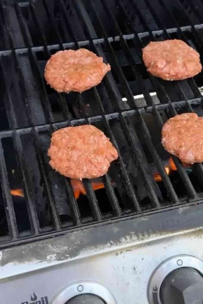 4. Preheat the grill to 350°F. Grill patties about 3 minutes per side, until the internal temp reaches 165°F.