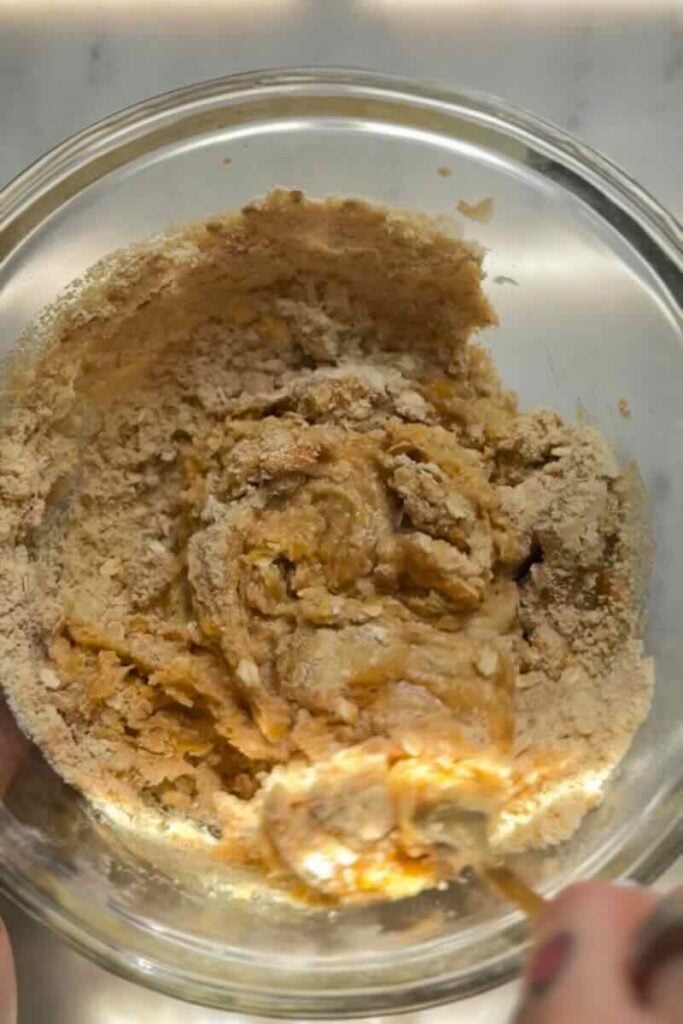 See the full ingredient list and instructions in my scoopable protein monster cookie recipe. Here is a quick overview of what makes it work: