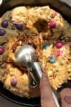 - Let it cool for a few minutes, then scoop into bowls and serve warm. Top with vanilla ice cream for the full scoopable cookie experience.