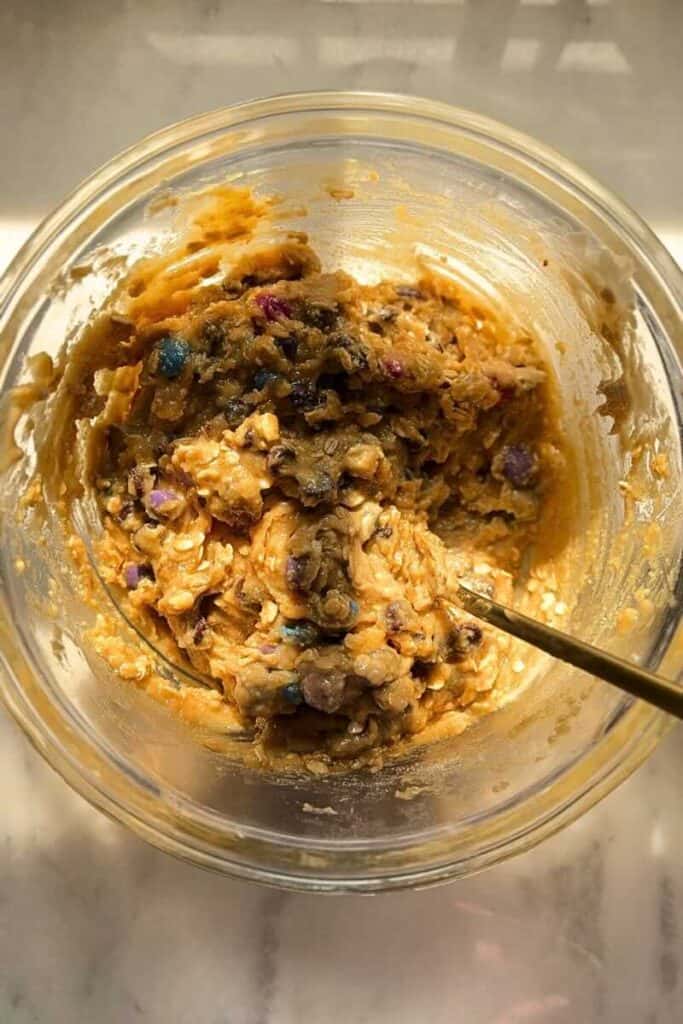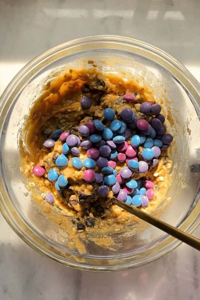 Candy gems. These make it feel extra fun and give it that true monster cookie look. I like to use this brand but you can use traditional M&Ms if you prefer.